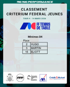En savoir plus → - Résultats FFTT Critérium Fédéral Adultes Tour 4Critérium fédéral – Adultes Tour 4…