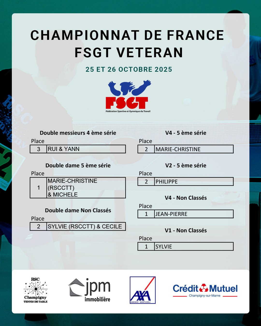 Bravo à tous nos joueurs engagés au championnat de France FSGT vétérans, très beau parcours