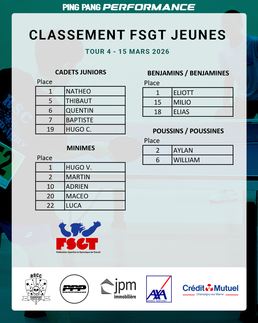 Résultats FSGT Jeunes Tour 4