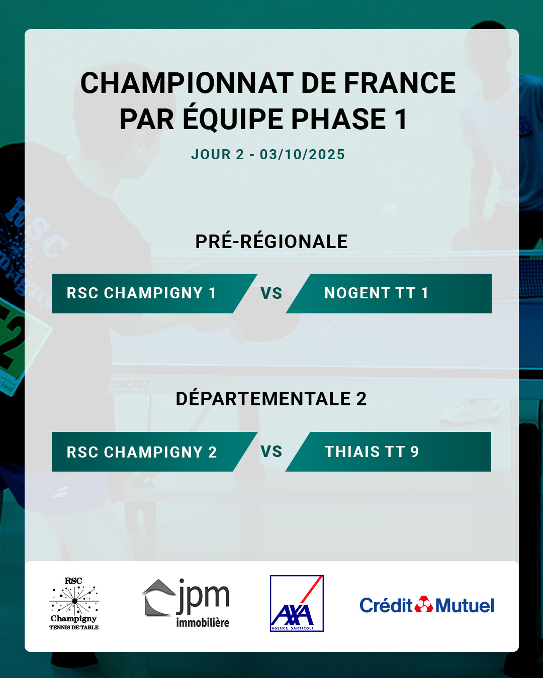 FSGT Individuels Adultes et Jeunes + FFTT Critérium Fédéral