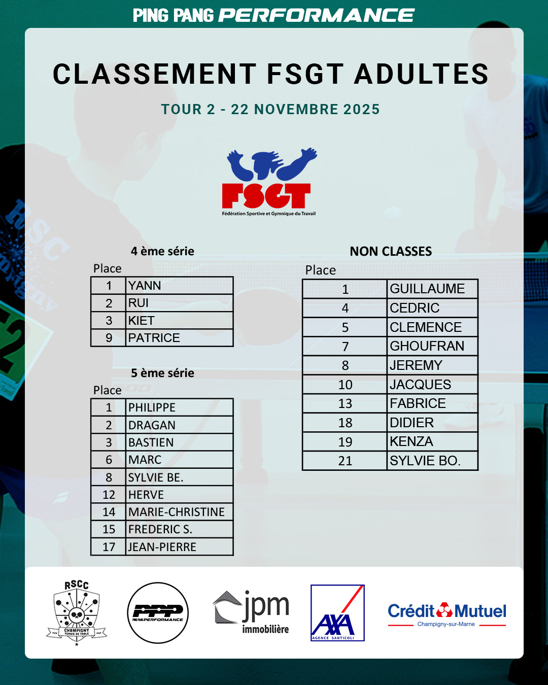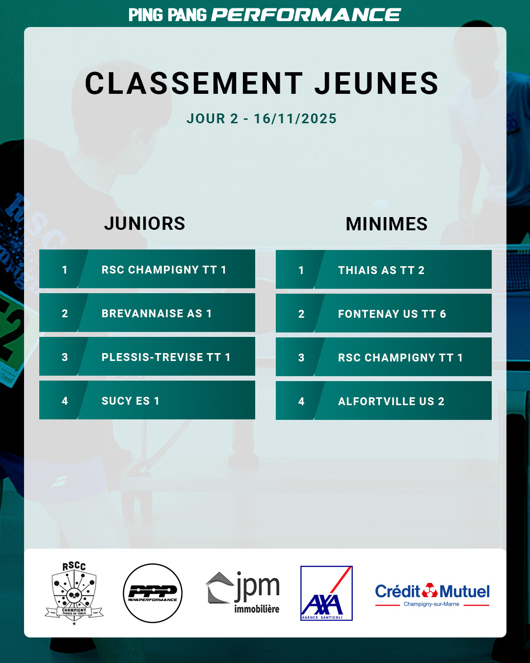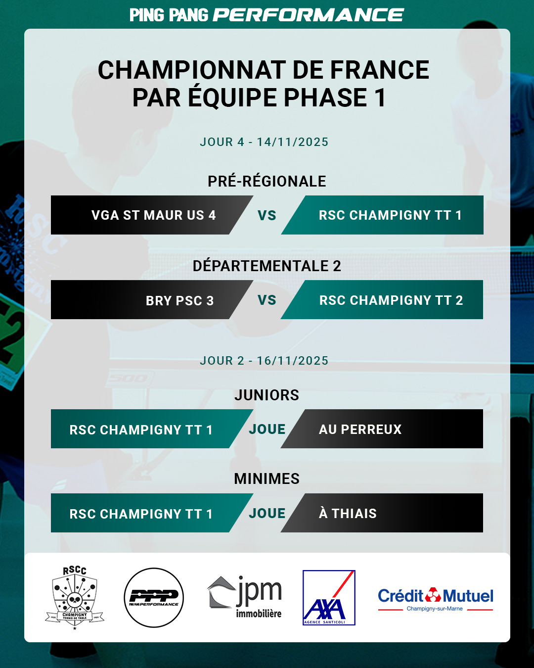 NOUVEAU PARTENARIAT et EQUIPEMENTIER ! Le RSC Champigny Tennis de Table est fier d’annoncer son tout nouveau partenariat avec Ping Pang Paris Cette collaboration marque une belle étape pour notre club : un soutien matériel de qualité des avantages pour nos licenciés et une passion commune pour le ping-pong made in Île-de-France Merci … Lire plus…