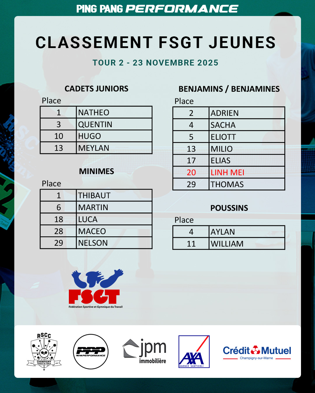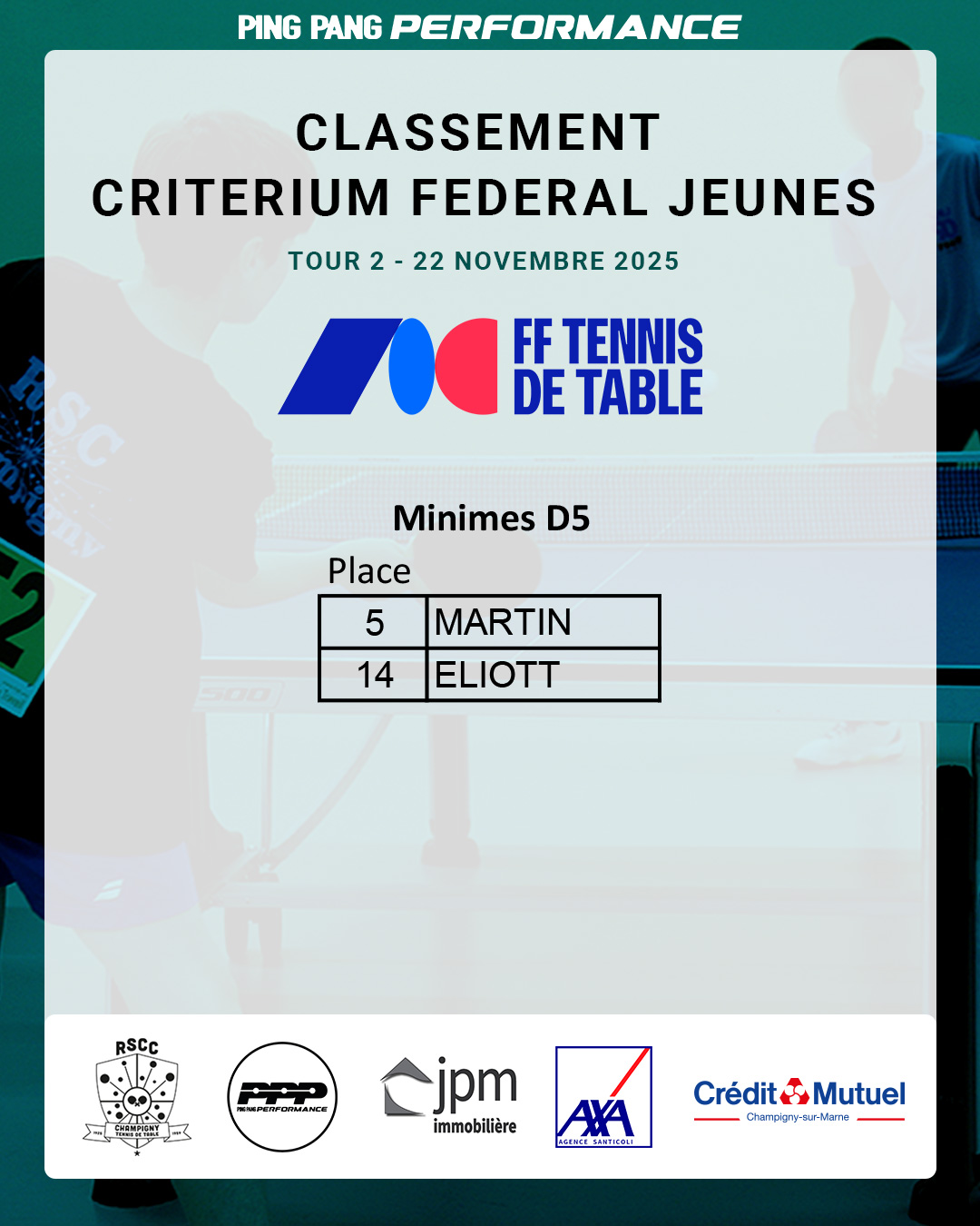 Résultats FFTT Critérium Fédéral Jeunes Tour 2